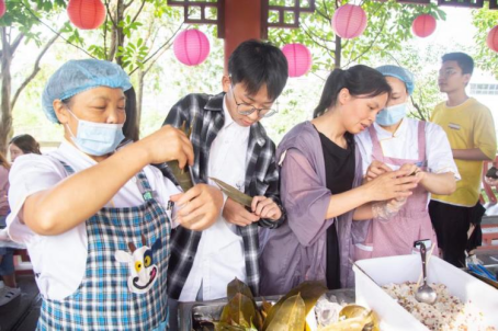随后李炎同志在扇面上创作,指导外籍师生扇面作画的绘画技巧。接下来师生共同参与其中,在扇面上自由发挥,自由创作,感受其中的奥妙。除此,此次活动还有书法、包粽子、茶艺等丰富多彩的项目。